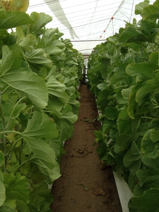 メロンの葉っぱって大きいんですね。