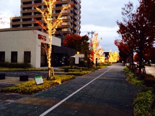たとえばウチの近くの街路樹はすっかりクリスマスバージョン。