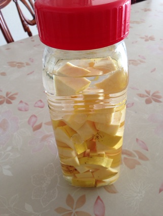 お湯で割って、はちみつを入れて。