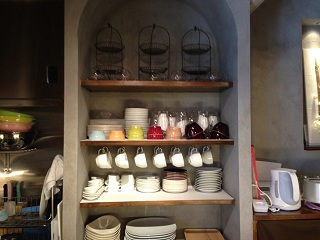 かわいい食器たちが並ぶカップボード