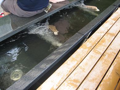 ベンチの横にはハーブの足浴場。