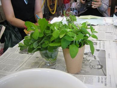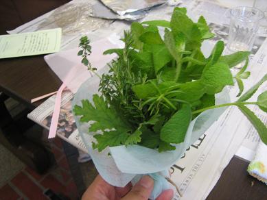 園内で摘み取ったハーブをアレンジ風にまとめ、