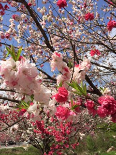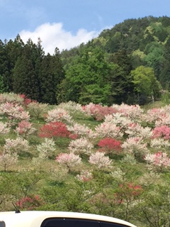 新緑をバックに花桃がとても綺麗に咲いていました。