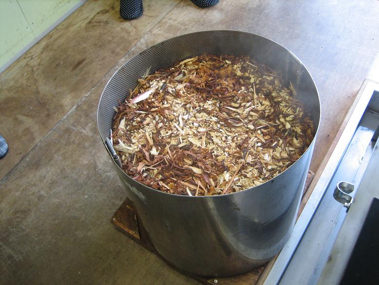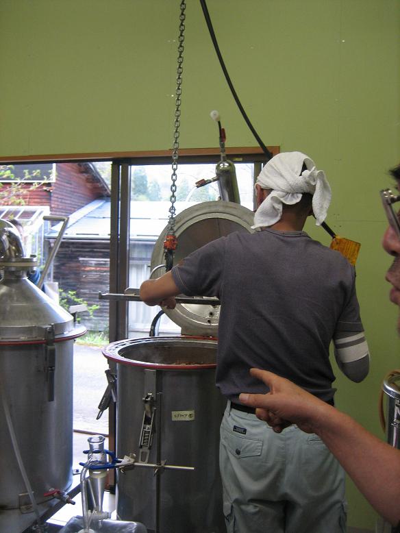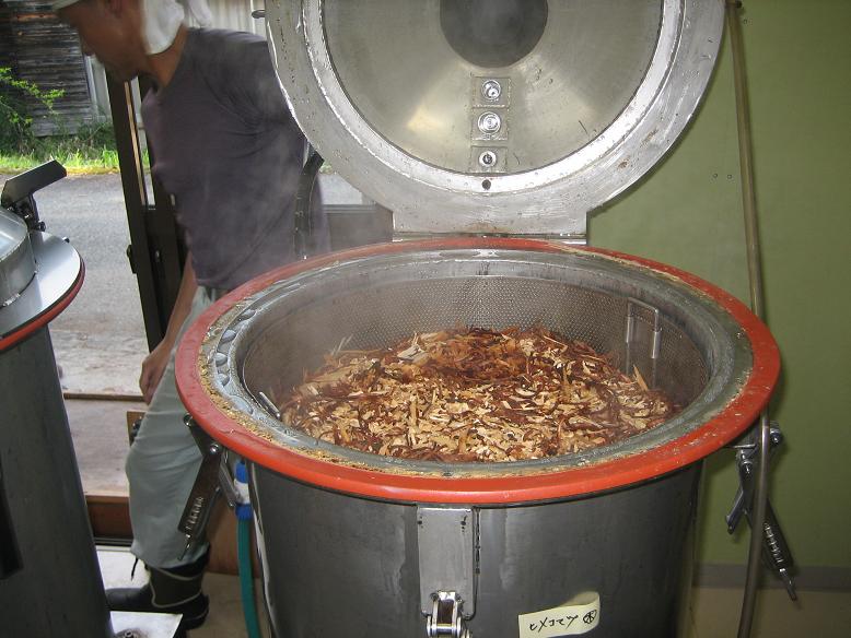 蒸留釜の中身。この日はニオイコブシ。