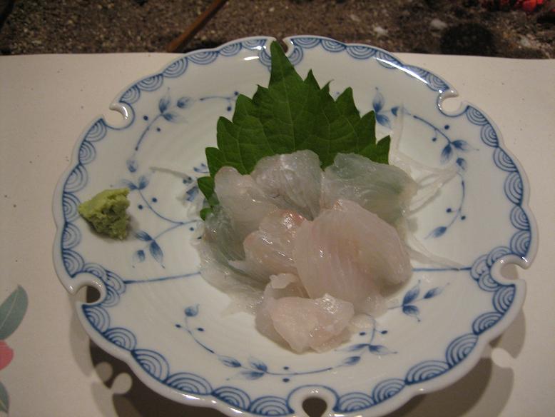この合間に出て来たのが、天然ひらめのお造り。