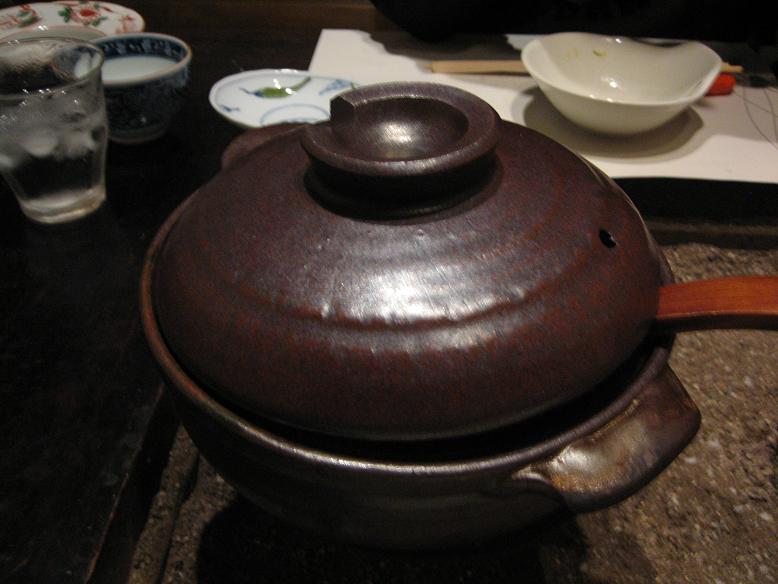胡麻豆腐も頂いて、そろそろ満腹・・・と思っているときに土鍋が登場。