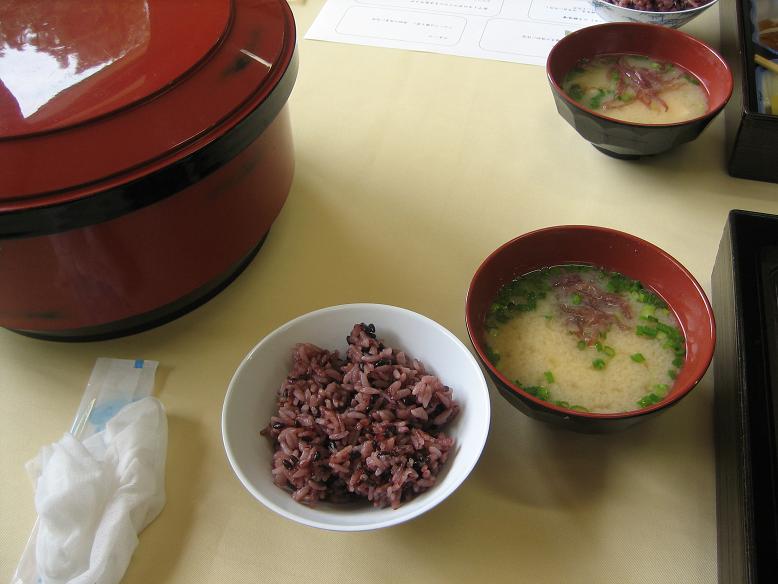 ¥1,575の薬膳弁当です。ご飯は赤米、お味噌汁もとってもおいしかった~。おかわりもできます。