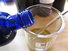 ビーカーに移す前にチンキのボトルをよく振ってくださいね。