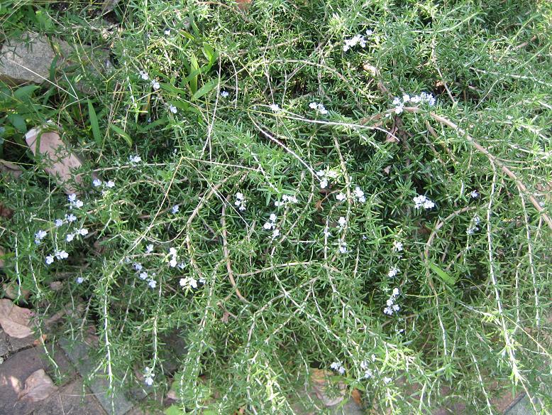 ホーソンの脇でローズマリーのトスカナブルーも咲いています。