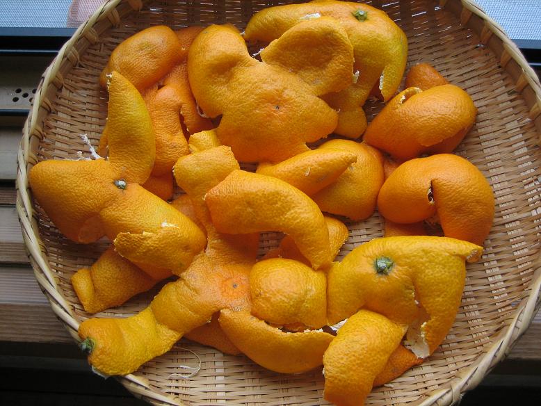 本当はシークワーサーのような”青ずっぱ~い”果実の皮がベストなんですが・・・
